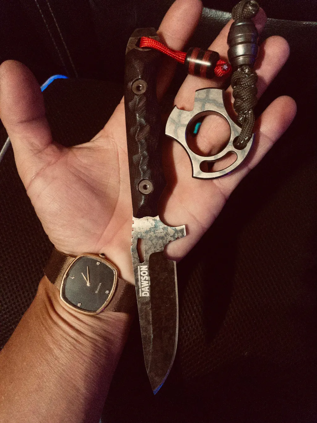 I heard about Dawson Knives from Wes Huff on a podcast. Very high quality blade. Has the feel of a custom big name blade. Comfortable in the hand, very well balanced, and wicked sharp out of the box. Edge is probably finished around a 1000 grit, so has a more polished razor sharp edge. Much like the edge I get sharpening with my Wicked Edge sharpener. Very reasonably priced and customer service and the Dawson company are top notch. Highly recommend, you won't regret it.